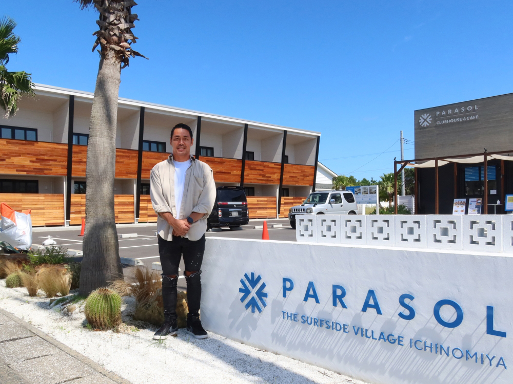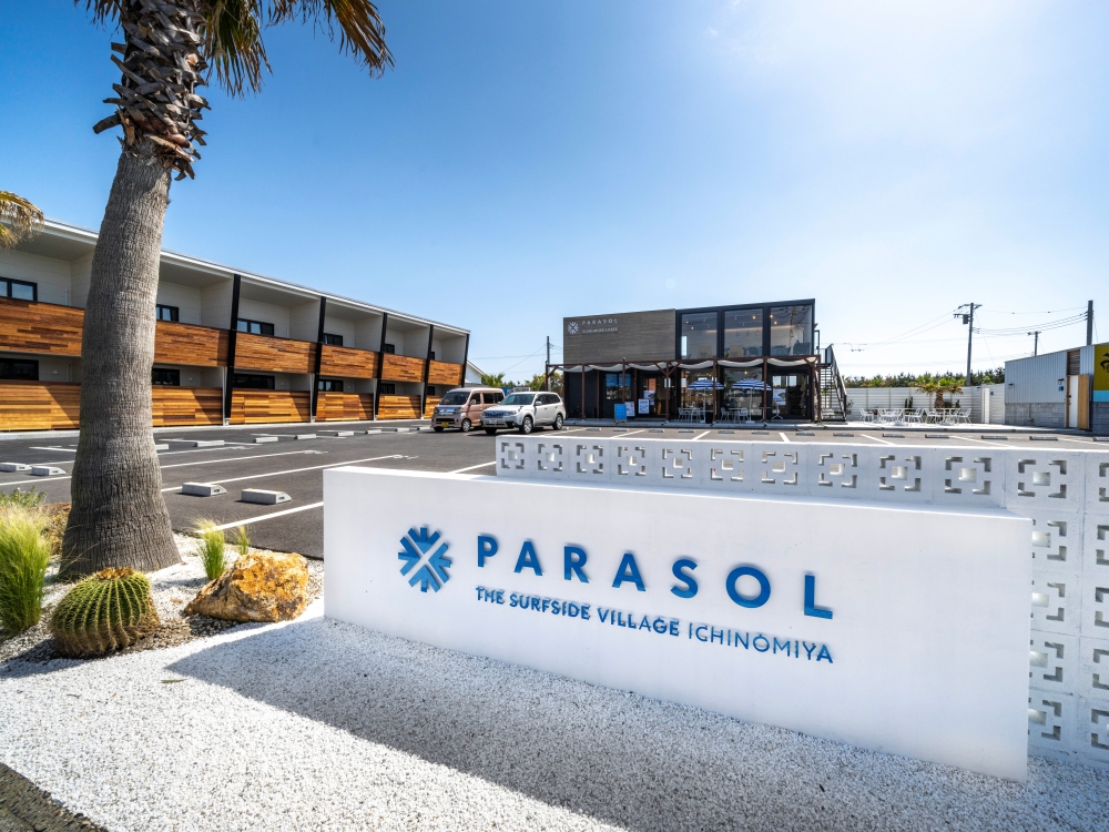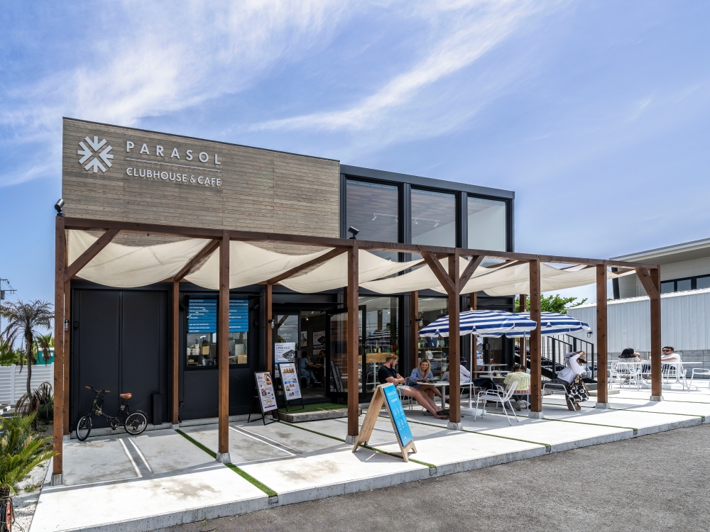 そんな町に、2020年秋に誕生した約1,500坪のサーファーズタウンが「PARASOL - The Surfside Village ICHINOMIYA」(以下、PARASOL)。カフェとコワーキングスペースを有する「クラブハウス」、24部屋ある賃貸住宅「アパートメント」、そして分譲住宅「レジデンス」の3つの施設で構成されている。