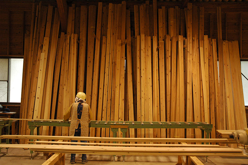 二次産業については、もともと7軒あった製材工場が次々となくなり、1998(平成10)年に最後の1軒が閉鎖されるとなった。根羽の林業がなくなってしまう危機感から村が買い取り、村長が組合長を務めて村の全戸が組合員である森林組合が受託して製材を始めた。