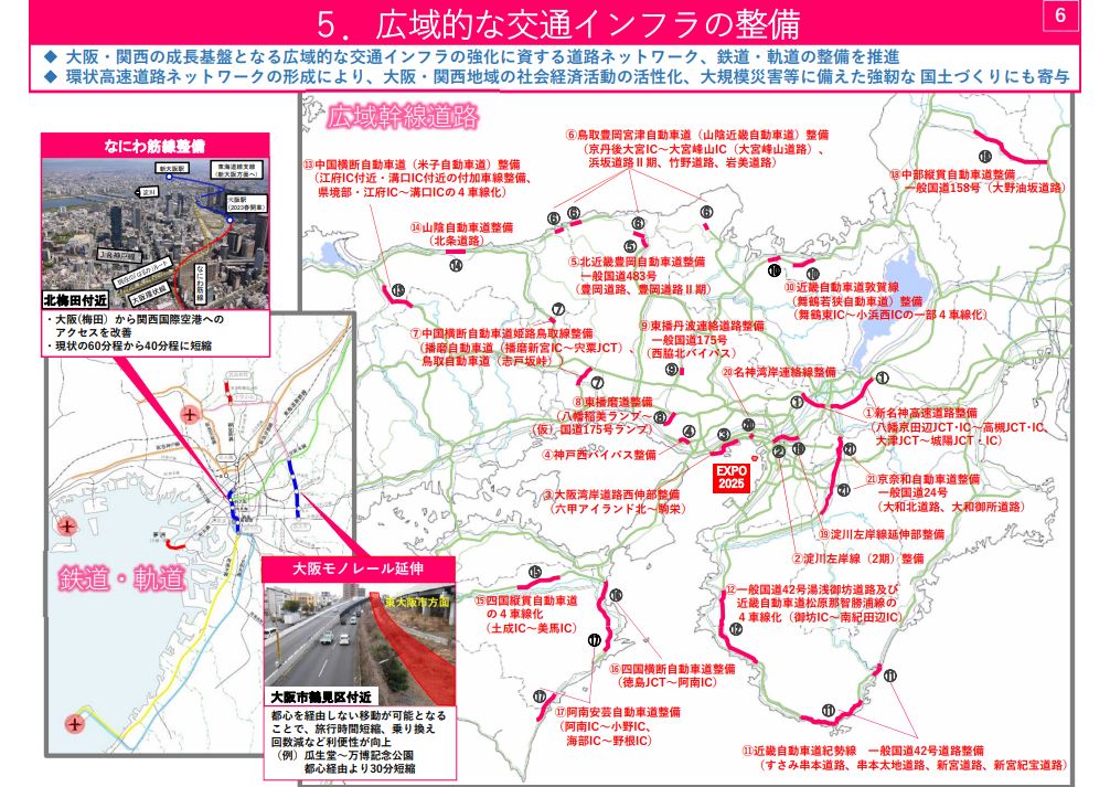 2025年のイベント開催を後押しし、イベントの円滑な開催を支援すると同時に、関西経済の成長を公共投資で支える狙いがあるのだ。
