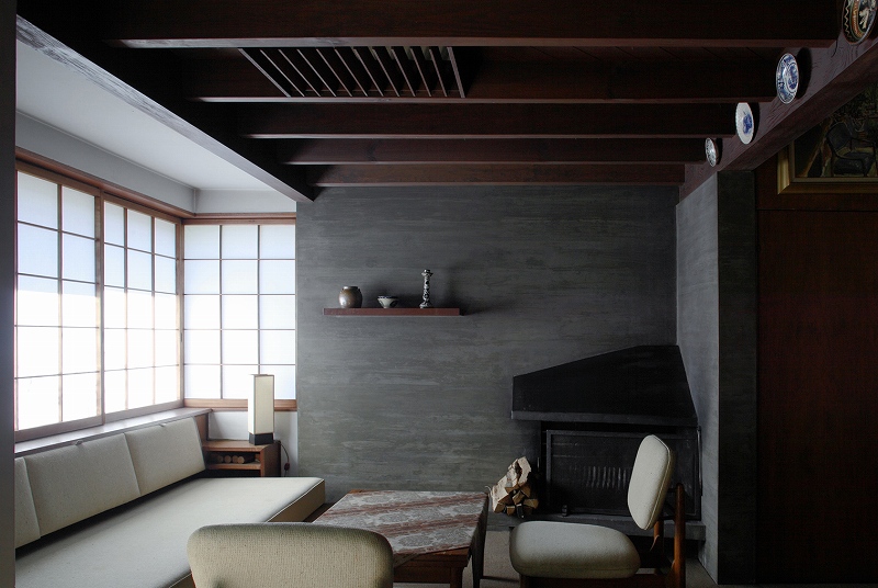 施主がヒマラヤ山系に行くほどの登山家だったことから、建物は山小屋のイメージで依頼された。確かに外から見ると東西南北に大きく取られた木枠のガラス窓、木を貼った外観、切妻の屋根はヨーロッパの山岳エリアのホテルのようにも見える。