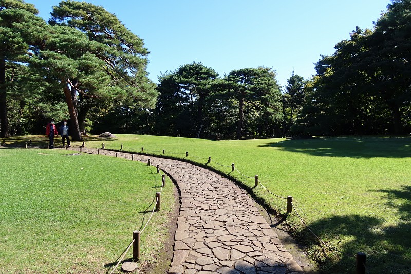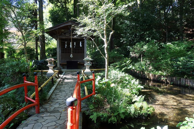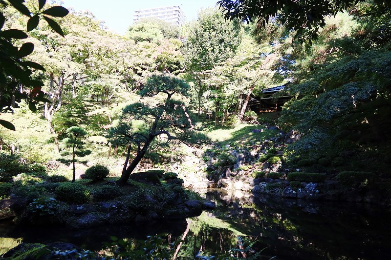 駅近くの入り口から入ると、園内は斜面を下る高低差のある土地となっており、この公園は段丘の崖にできた谷を利用した「回遊式林泉庭園」。下っていくと湧水を集めた次郎弁天池があり、その水の清らかなことに驚かされる。