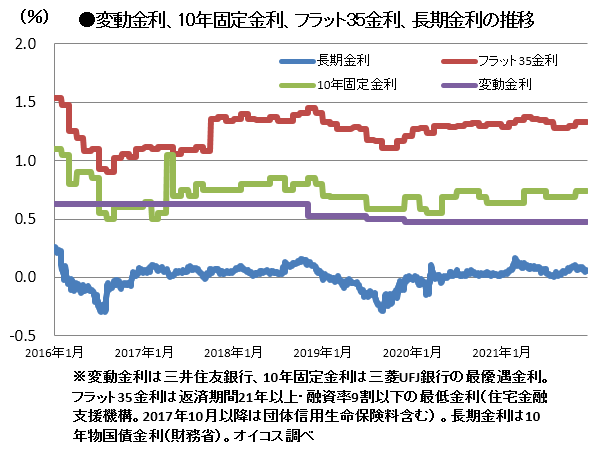 日本でも長期金利は低迷が続いており、10年固定金利や35年固定金利がすぐに大きく上昇する状況にはなっていない。今後も米国と同様、コロナ禍や景気の動向をにらみながら、小幅な金利調整が続く展開となりそうだ。