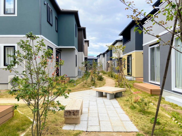 これまでの宅地開発でも、外構や植栽に力を入れてきたというトータテ都市開発だが、家々の軒先を巡るような「フットパス」の導入は初めての試みだそうだ。