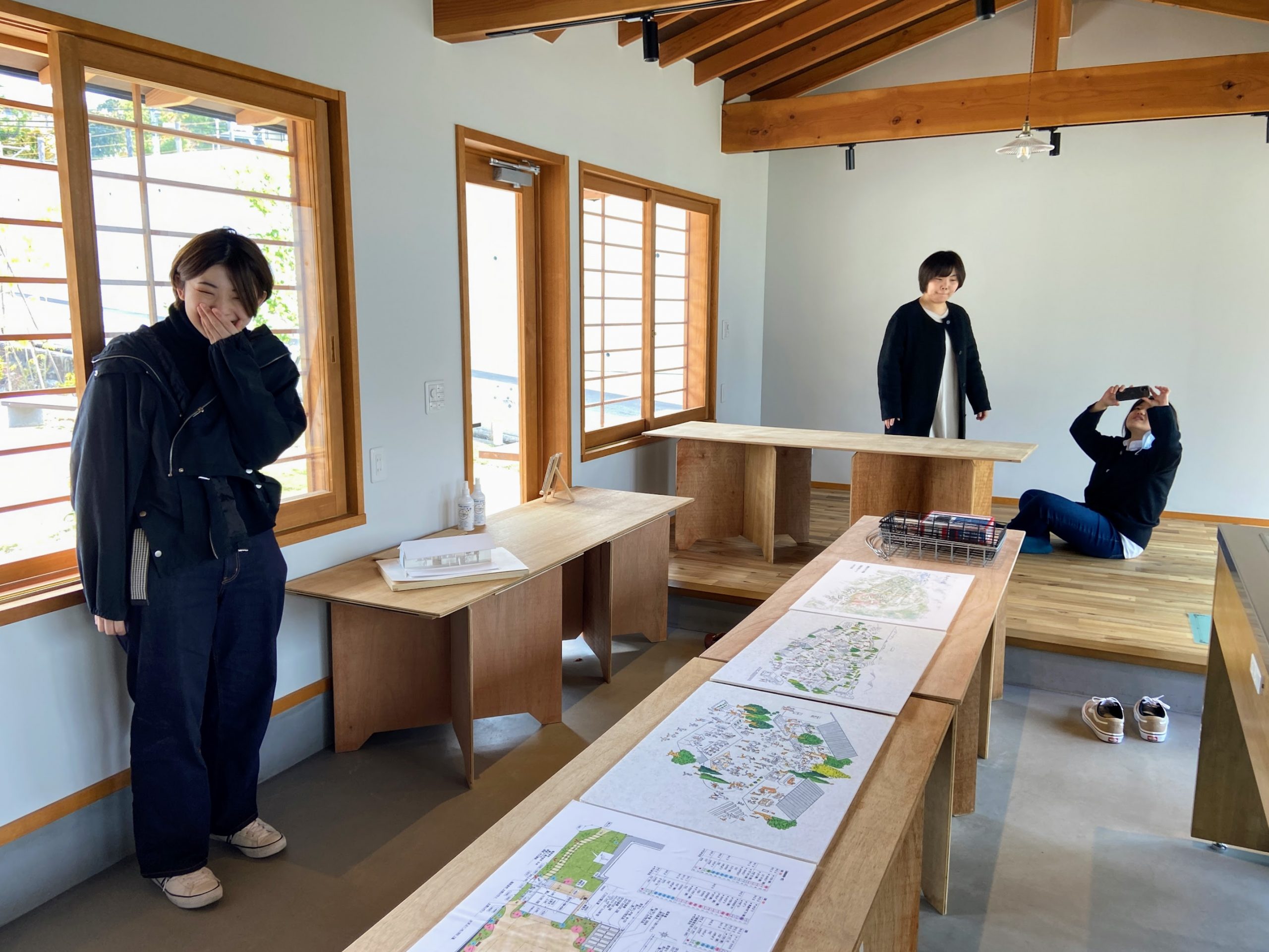 「エリアをリサーチして分かったのは、ここではご近所がお互いのことをよく知っていて、人情味にあふれていることでした。広い団地ですが、地区ごとに新聞をつくったり、料理教室を開いたりしていて、交流が活発なんです」と設計チームの3人。コミュニティハウスができたことで、大人たちの“部活”にも役立てればいい、という。