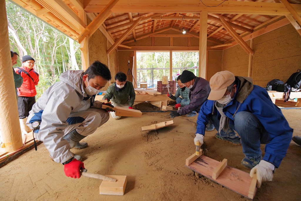 多くの人の手によって行われたよいとまけや土間・土壁づくり。みんなで力を合わせて行ったからこそ、より愛着の湧く住宅となったことだろう。
