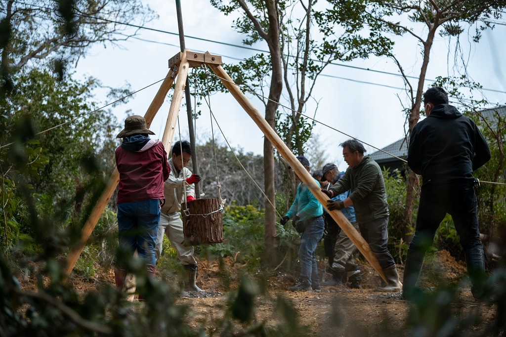 いかだ丸太の家も、家族や仲間、地域の方が集まり「よいとまけ」をした。
