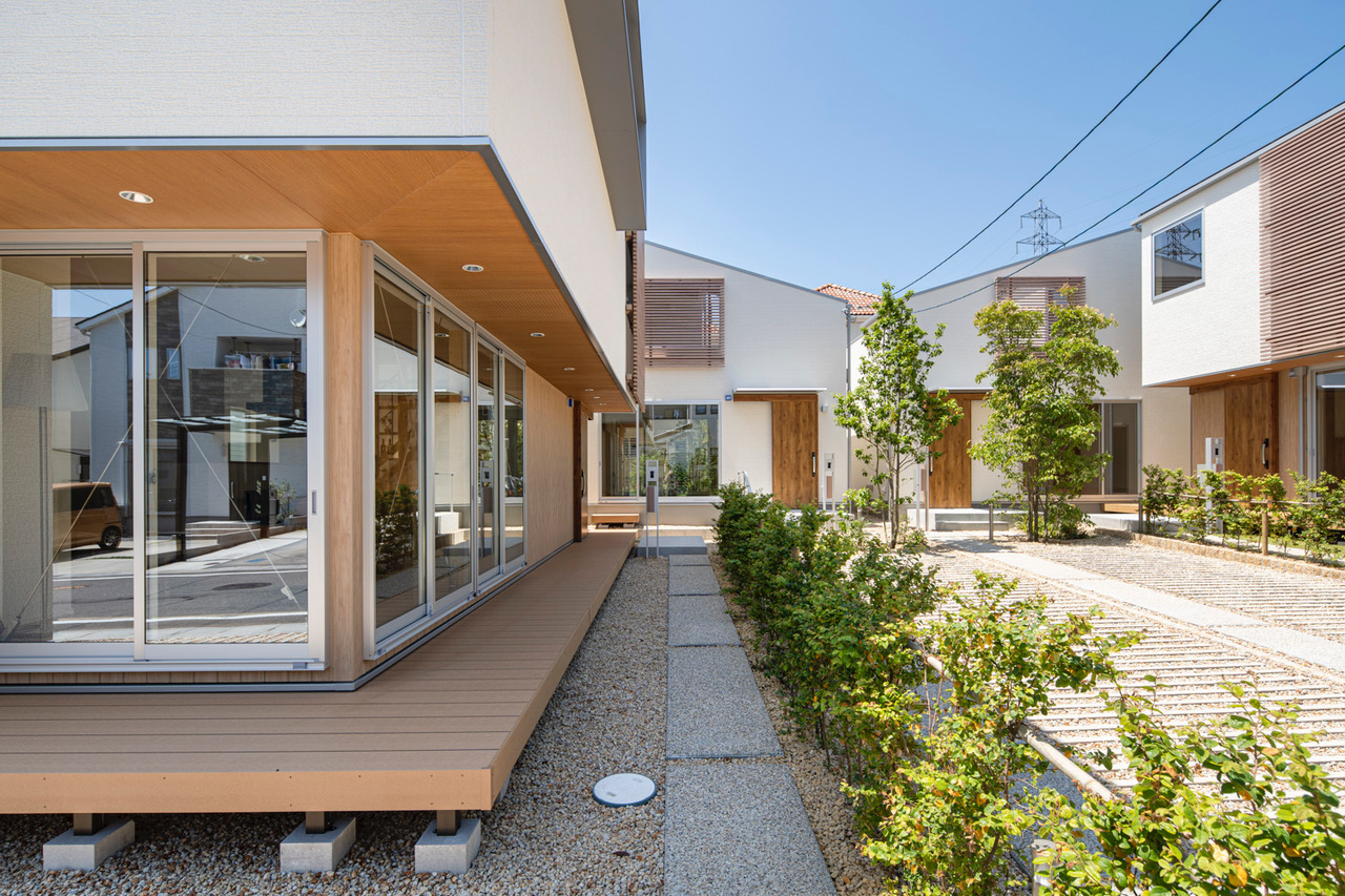 建築設計の自由度が低いこともあり、建築家がなかなか立ち入らない分譲住宅業界。有限会社ランドサット一級建築士事務所はこの業界に一石を投じている会社のひとつだ。2021年には、地方の住宅会社と共同で開発した分譲住宅の2案件が、「2021年度グッドデザイン賞」を受賞。画一的になりがちな集合分譲住宅が作り出す街の景観に、ひと味異なる工夫と面白みを加えている。