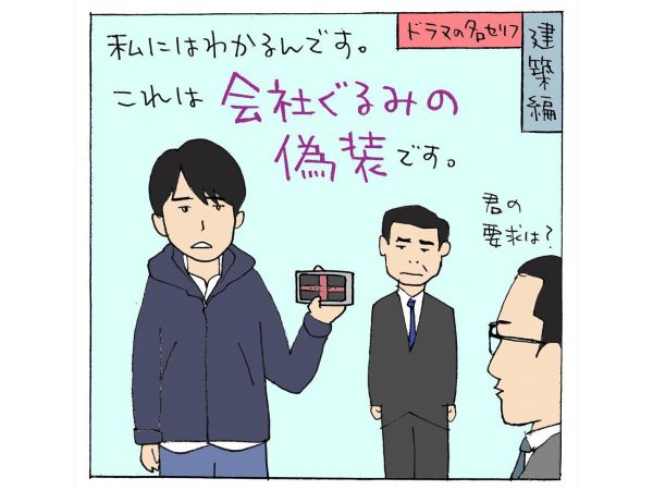 建築や住宅、それを設計する建築家は、映画やテレビドラマの中でどう描かれているのか。元・建築雑誌編集長で画文家の宮沢洋(BUNGA NET編集長)が、「名セリフ」のイラストとともに、共感や現実とのギャップをつづる。今回取り上げるのは、2020年にカンテレ・フジテレビ系で放送された連続サスペンスドラマ、「10の秘密」だ。主演の向井理(おさむ)が、大手建設会社の“偽装”を知ってしまった確認検査員を演じる。
