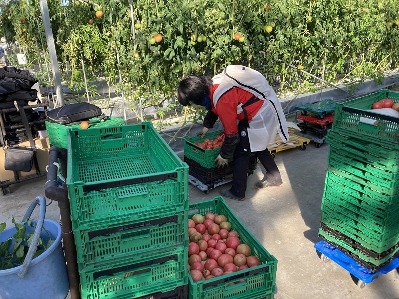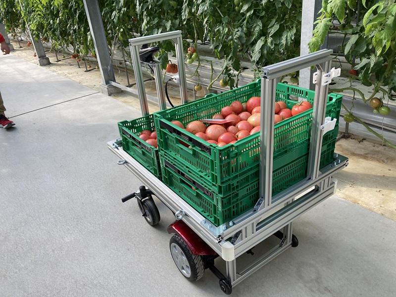 愛知県は農業産出額も全国トップクラスだが、その農業の場でもサービスロボットが活躍。今回の実証実験では、トマト農園で農薬の自動噴霧ロボットや、収穫をサポートするロボットの導入実験が行われた。
