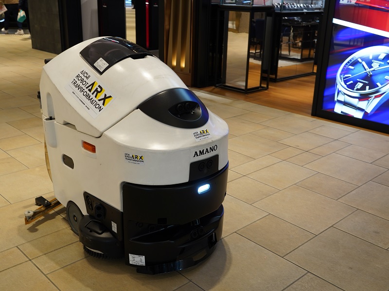 今回、名古屋駅前にある商業施設、大名古屋ビルヂングでの実証実験を見学させてもらった。飲食店でお客が注文したメニューをテーブルまで運ぶ、“動くショーウインドー”として商品をPRする、空間の清掃、また除菌や脱臭を行う、そして警備室と連携して館内を見回るなど多彩だった。