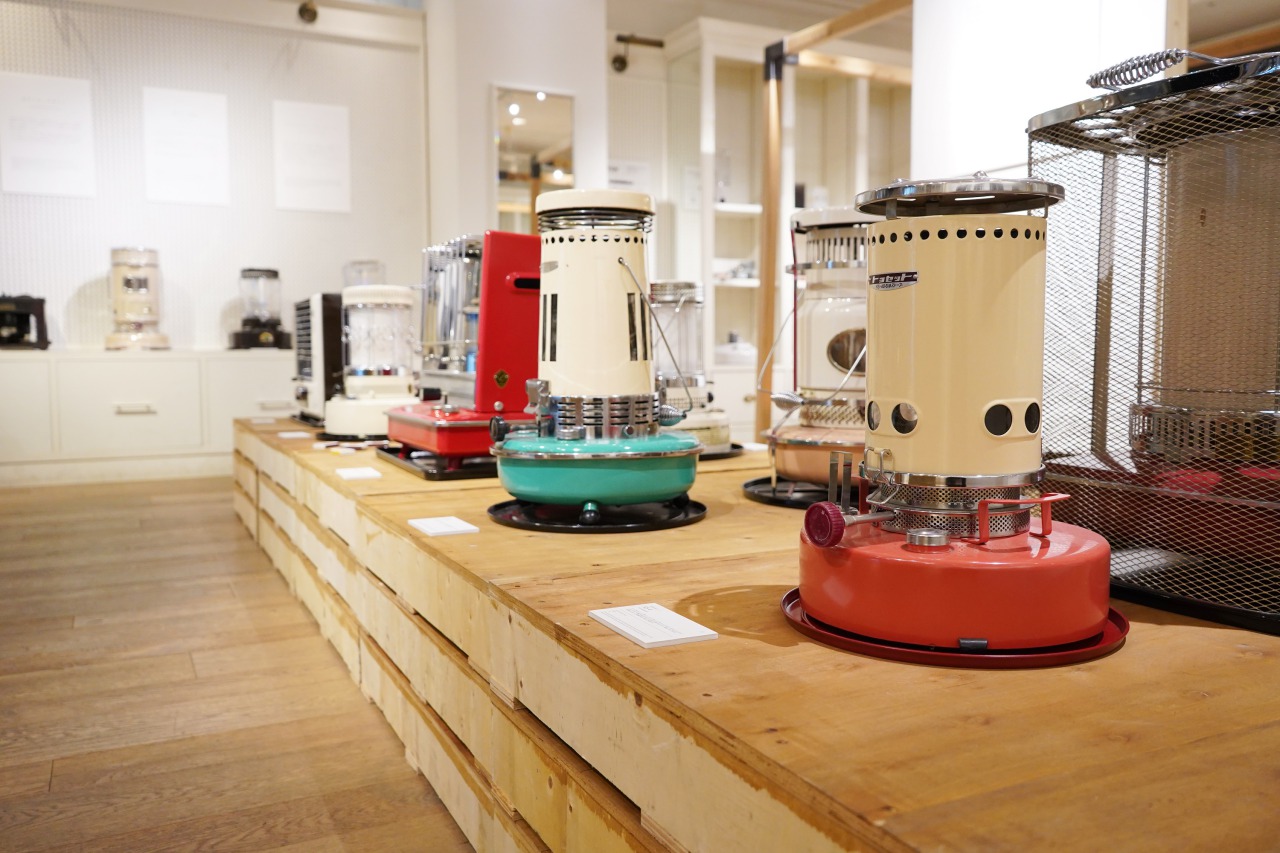 1980年代に人気を博したレインボーストーブなど過去の製品を展示したほか、無骨でクールなインテリアを好む人たちから支持を集める「GEAR MISSION」など最近人気のラインアップを展示販売した。