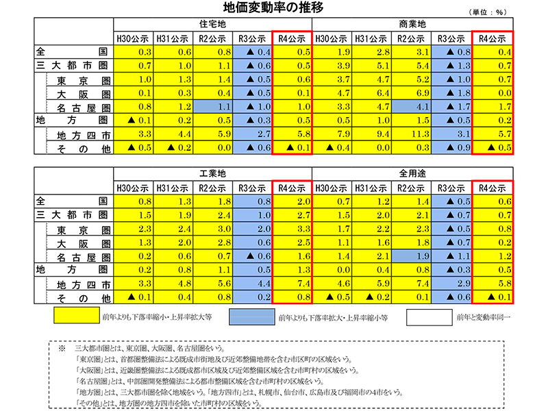 令和4年地価公示の概要