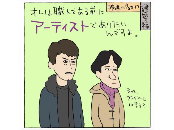 建築や住宅、それを設計する「建築家」は、映画やテレビドラマの中でどう描かれているのか。元・建築雑誌編集長で画文家の宮沢洋(BUNGA NET編集長)が、「名セリフ」のイラストとともに、共感や現実とのギャップをつづる。