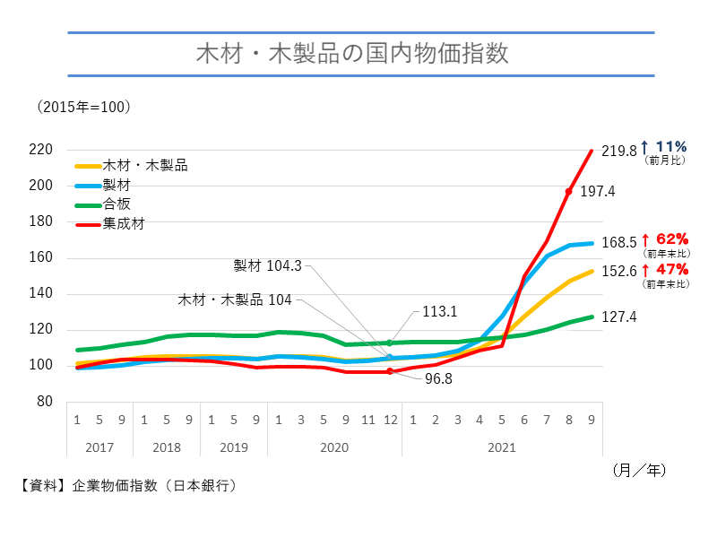 発端となったのは米国における住宅需要の増加である。米国では新型コロナウイルスにより在宅勤務が拡大したことで、郊外で木造の一戸建て住宅を建てる人が急増した。また、同時期に中国でも木材需要が高まったことも一因となっている。