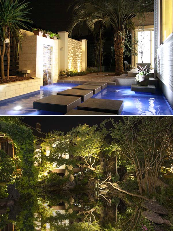 大きな庭に池やプールがある家もあるだろう。せっかくの自慢の池やプールも、夜になると見えないというのではもったいない。また、漆黒の水辺は危険も伴う。もちろんこれらも、照明によって解決できる。