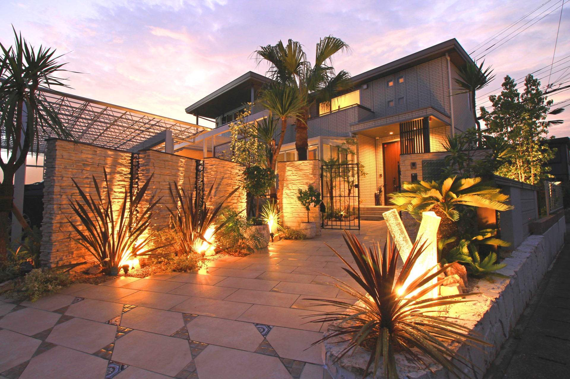 お気に入りの庭も、ライトがないと夜間は真っ暗になり、せっかくの景観を楽しめない。ライトを入れることで夜でも庭を眺められるばかりか、昼間とは違う表情を楽しむことができる。また、外構にライトを取り入れることで、家をかっこよく見せたり、こだわりの外観をより美しく見せたりすることもできる。