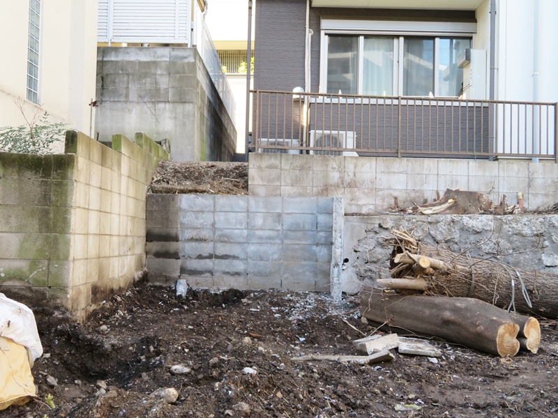 二段擁壁は増積み擁壁が少しずれたものと思えば分かりやすい。擁壁の後ろにまた擁壁を造作るというやり方で作られたものである。