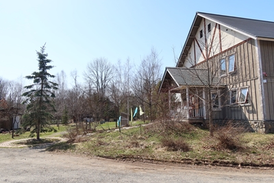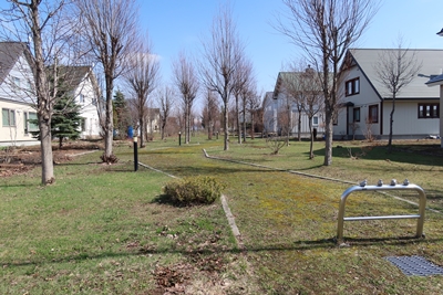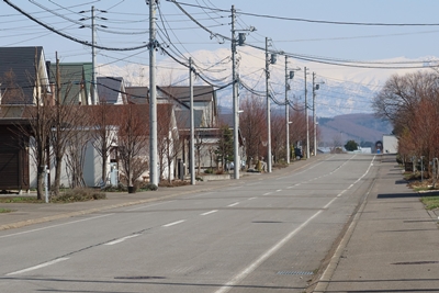 その年に宅地分譲された住宅地、グリーンヴィレッジを見学させていただいた。遠くに雪を抱く山々を望む住宅地は広い道路の両側に三角屋根の、木をふんだんに使った家が並び、日本とは思えないようなゆったりした広さが印象的。