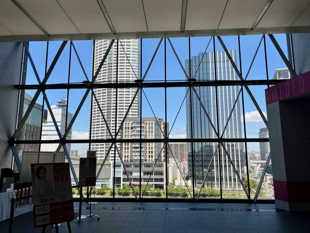 最上階にたどり着いて、まず目を見張るのは堂島川を望む大開口だ。4階と5階合わせて四方に開口があり、展示室から展示室へ移動する合間に、中之島周辺の景観も、ぐるりと巡ることになる。