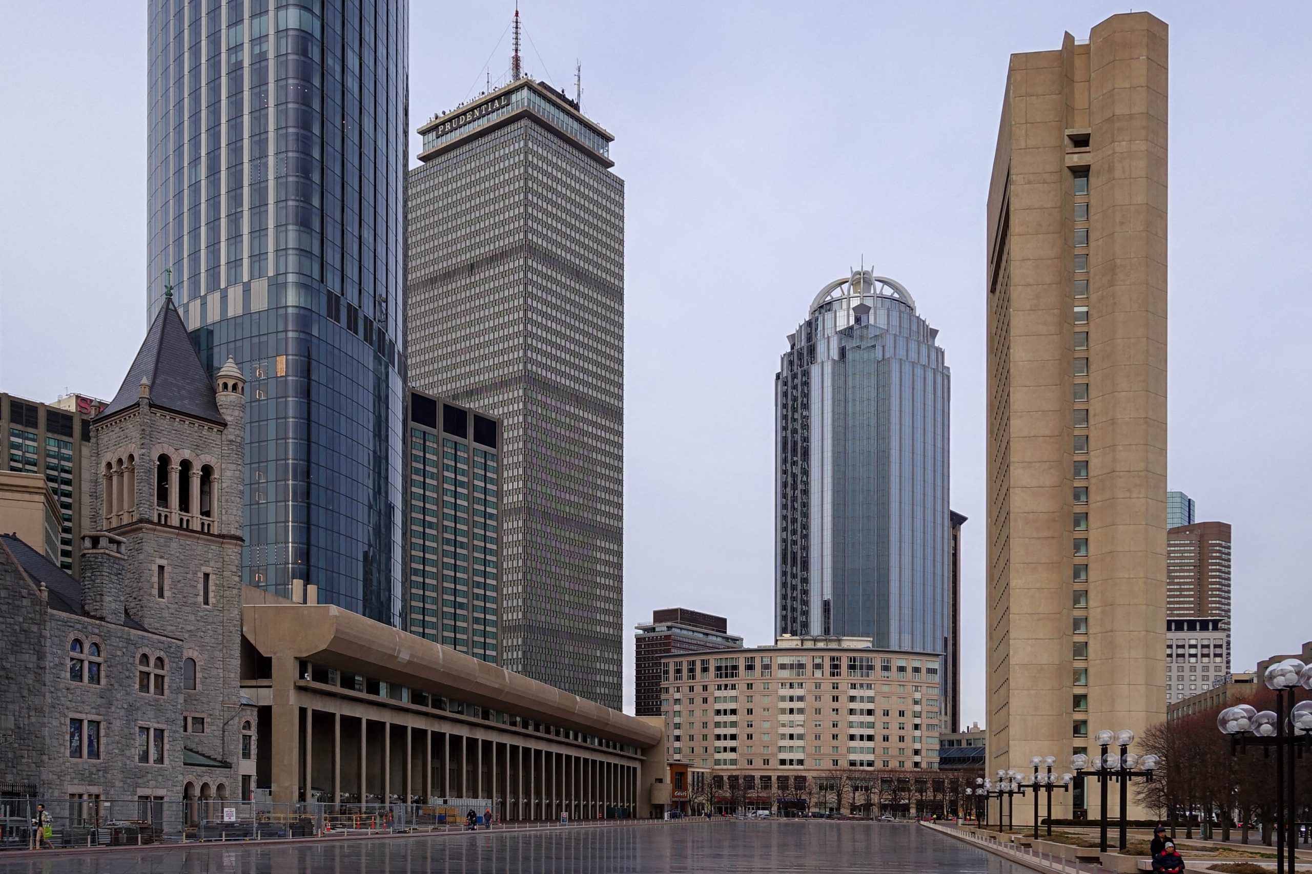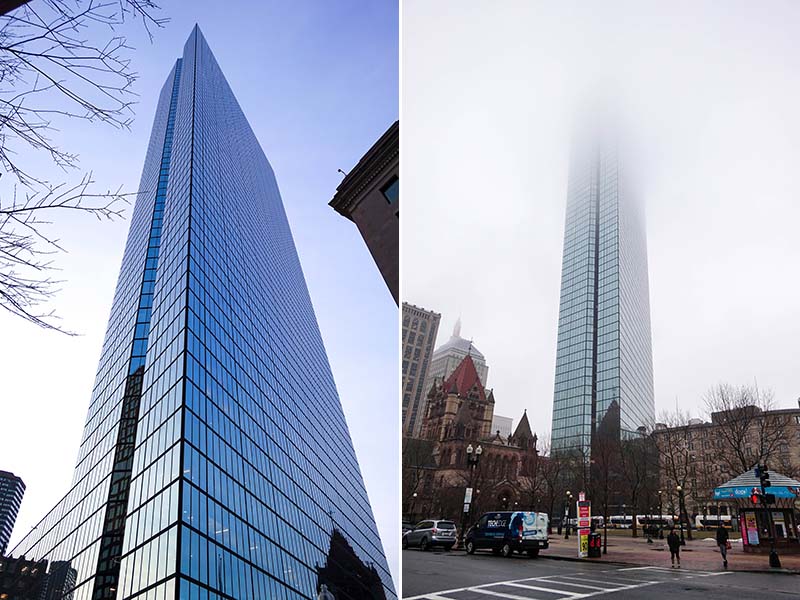 ボストン公共図書館とトリニティ教会が向かい合うその隣に、ボストン初の超高層ビルとして建設されたのがジョン・ハンコック・タワー(1976年)だ。設計はルーブル美術館のガラスのピラミッドで知られるI.M.ペイ。