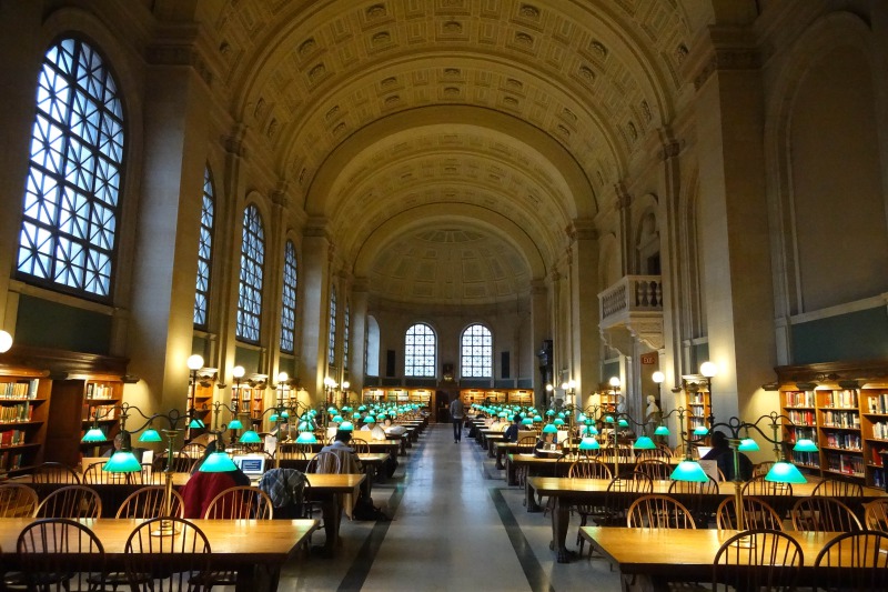 「ボストン公共図書館は盛期ルネサンスのパラッツォの様式や古代ローマの様式を用いていますが、それぞれの典拠が分かるように厳格に適用しているところがリチャードソンと異なります。19世紀後半のヨーロッパの潮流は、19世紀前半とは異なるこのような様式主義でした。内部は部屋によってそれぞれ内装が異なり、メインの閲覧室は古代ローマを思わせる雰囲気です。古代ローマは浴場や競技場などの豪華な公共建築を生み出した時代ですから、公共的な空間をローマのスタイルでつくるのは理に適っています」。