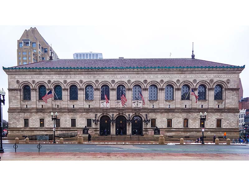 トリニティ教会と広場を挟んで向かい側にあるのが有名なボストン公共図書館(1895年)だ。設計はマッキム・ミード&ホワイト。その中心人物であるチャールズ・フォレン・マッキムはリチャードソンの弟子に当たる。ニューヨークに本拠を置き、ヴィラード邸や4代目ニューヨーク市庁舎など数々の名作を手掛け「アメリカン・ボザール」と呼ばれる様式的な建築家の代表として知られる。