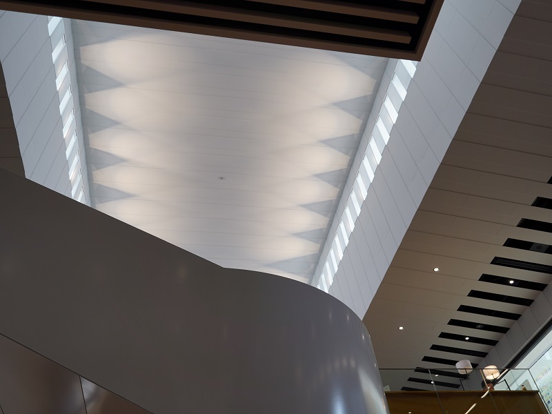 内部をご紹介する前に、まずは外観に触れておきたい。地下1階、地上4階の建物となるが、真四角ではなく、上部は階段状になっている。これは小牧市のほぼ中央にある小牧山をイメージした。