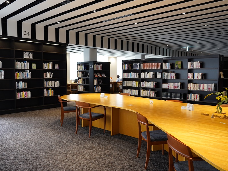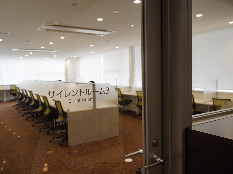 飲食(※食事は食事可能席またはテラス席のみ)、そして友人とおしゃべりしてくつろぐこともOK。一方で読書や勉強に集中したいときには、一人用の個人ブースや研究個室、サイレントルームをそれぞれ予約して利用できる。また、多人数で読書や学習、研究に利用できるグループワークルームもある。幅広いニーズに対応できる座席と空間を工夫し、市民に寄り添う図書館であると感じた。