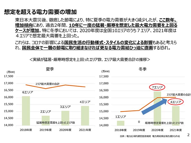 仮に夏の電力需給を乗り切ったとしても、次の冬には夏以上に厳しいひっ迫状況が予想されている。