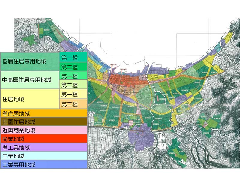 用途地域とは、その地域の土地の使い方や建物の用途、建て方などを定めたルールである。これによって地域ごとに、調和の取れた街づくりが行われる。たとえば住宅地に突然大きな工場ができてしまい、住み心地や安全性が損なわれるといった事態を防ぐことができるのは用途地域が整備されているためだ。