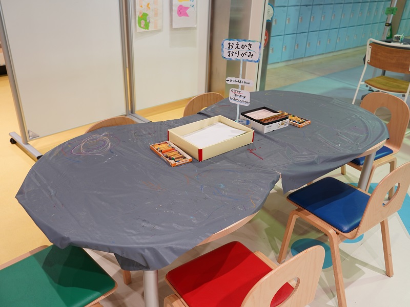 オープンスペースでは、用意された紙やペンなどを使って自由に工作を楽しめる。