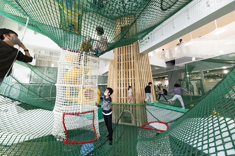 体を思いっきり使って遊べるものとしては、ほかにも木製のアスレチックやボルダリングなどがある。また、最新のデジタル技術を利用し、ボールを投げて当たった壁に花火の映像が出たり、魚が泳いでいたり、双方向型の新しい遊びが体験できるデジタルラボもある。