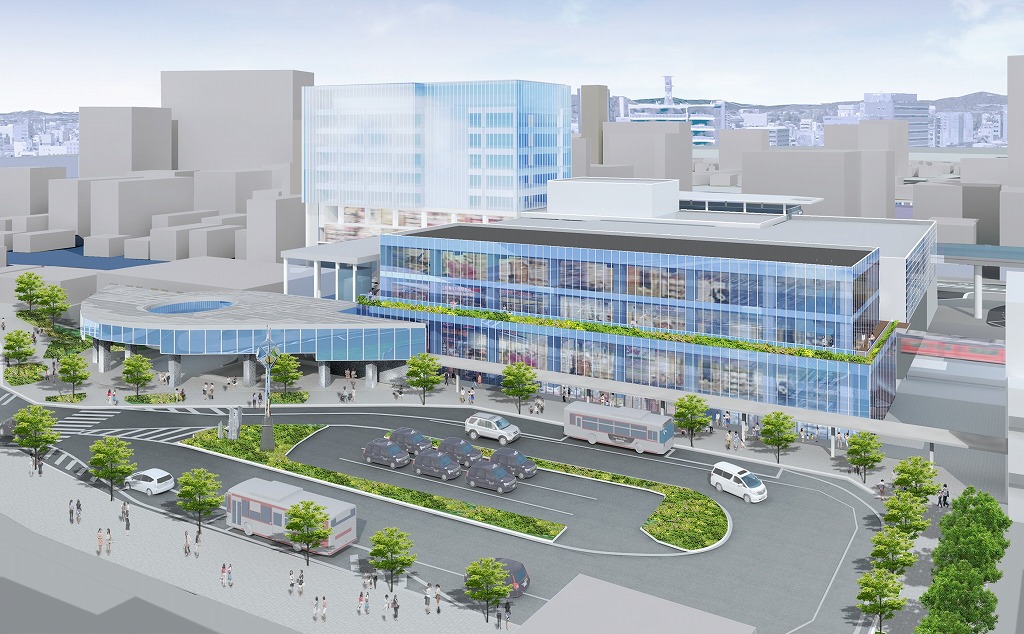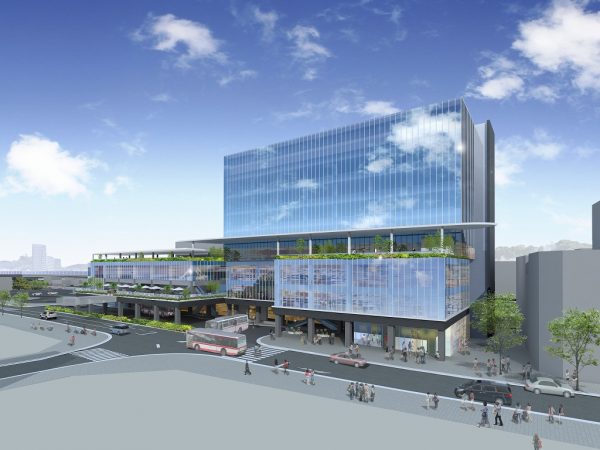 北口には地上8階建ての駅ビルが、2029年度内に竣工予定。商業施設をはじめ、オフィスや公共施設も入居する複合施設を整備する。