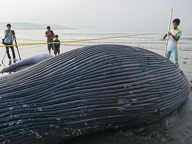 2018年8月、海水浴客で賑わう神奈川県鎌倉市の由比ケ浜海岸にシロナガスクジラの赤ちゃんが打ち上げられた。