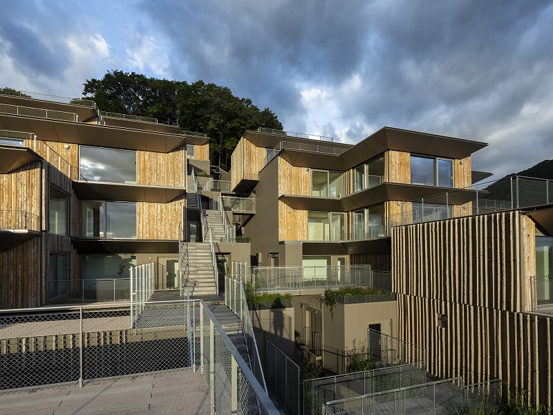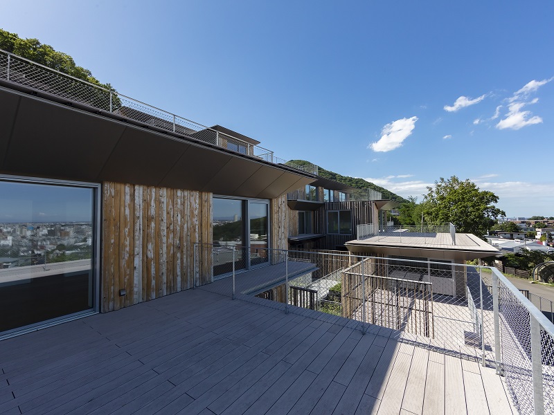 各戸を山肌に張り付くように並べ、周囲の自然や低層住宅地に溶け込ませた点、階段状に積み上げて眺望を室内に取り込んだ点、そして木材利用の新たな可能性を開拓した点が評価され、2022年のグッドデザイン賞に選ばれた。