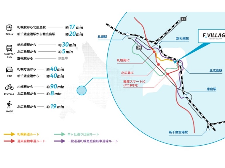 北広島市ではFビレッジ開業をきっかけに、当面の最寄り駅となるJR北広島駅周辺での開発事業が動き出し、アクセスをより向上させる新駅建設に向けた協議がJR北海道(北海道旅客鉄道株式会社)側と続けられるなど、地元にとっても大きな変化とインパクトをもたらしている。