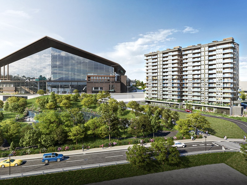 Fビレッジ内には、分譲マンションや商業施設、アウトドア施設など多くの施設が並ぶ。ボールパークの総敷地面積は東京ドーム約7.8個分の36.7ヘクタールで、あらゆる世代が憩い、交流し、住まうエリアを目指す。