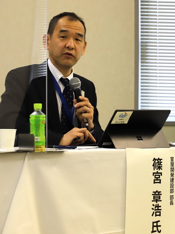 北海道開発局の室蘭開発建設部長の篠宮章浩さんは、インフラツーリズムについて「非日常を体験するツアーにより、地域に人を呼び込み、地域活性化に寄与することを目指すもの」と紹介。また地元市長の提案をきっかけに、モニタリングツアーやガイド研修などをへて、地元観光協会や経済団体などでつくる「室蘭観光推進連絡会議」で白鳥大橋のインフラツーリズム推進が承認されるまでの経緯に触れ、「行政の取り組みが地域の取り組みに深化した」と語った。また、イルカウオッチングや港湾のナイトクルーズといった船上コンテンツ、地元のグルメと結びつけることで、より幅広い展開が見込めると期待した。