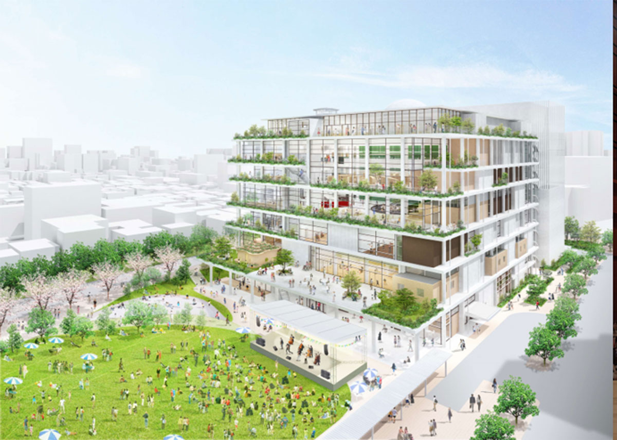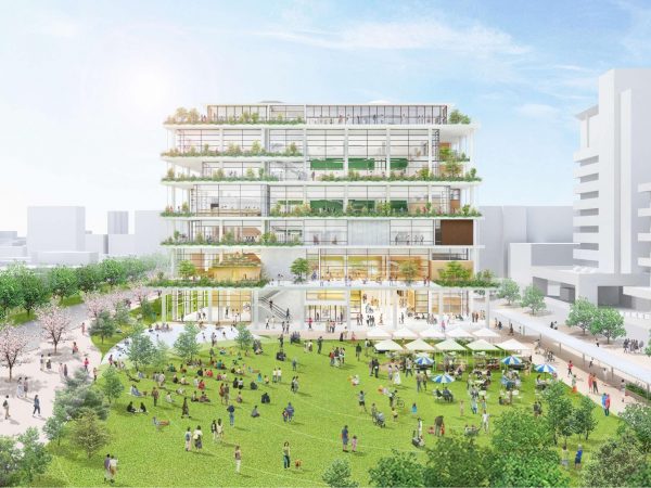 「演劇見てから、子どもの検診受けてくるわ」「広場行くんやったらついでに図書館に本を返しといてや」。そんなやりとりが聞こえてきそうな、新しい複合施設「茨木市文化・子育て複合施設 おにクル」(以降、おにクル)が、茨木市に令和5年秋に誕生する。図書館、こども支援センター、ホール、プラネタリウムや市民活動センターなどが集まった7階建ての施設の目の前には、芝生広場が広がる。人とまちとのつながりが緩やかに広がる、“立体的な公園”のような空間が設計のコンセプトだ。