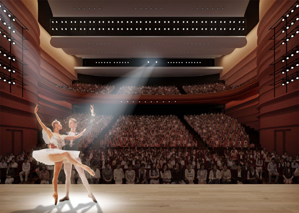 2階は子育て世代包括支援センター。3階は多目的スタジオスペース。会議室やレンタルスタジオとしても活用でき、4階には約1,200席の大ホールとホワイエがある。