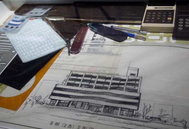 「まるごとマンションづくり」は、設計コーナーや施工コーナーなどのマンションづくりがまるごと学べるゾーンである。設計コーナーでは、昔の設計者の机回りが再現されている。当時は手書きで綿密な図面を書いていた。いくつか設計デザインを見せていただいたが、鉛筆のデザイン画はとても美しく、やわらかな印象を与えてくれる。時代とともに、CADなどコンピューターが導入され、現在は「BIM」などの最新の設計システムを使ってマンションの設計がされている。