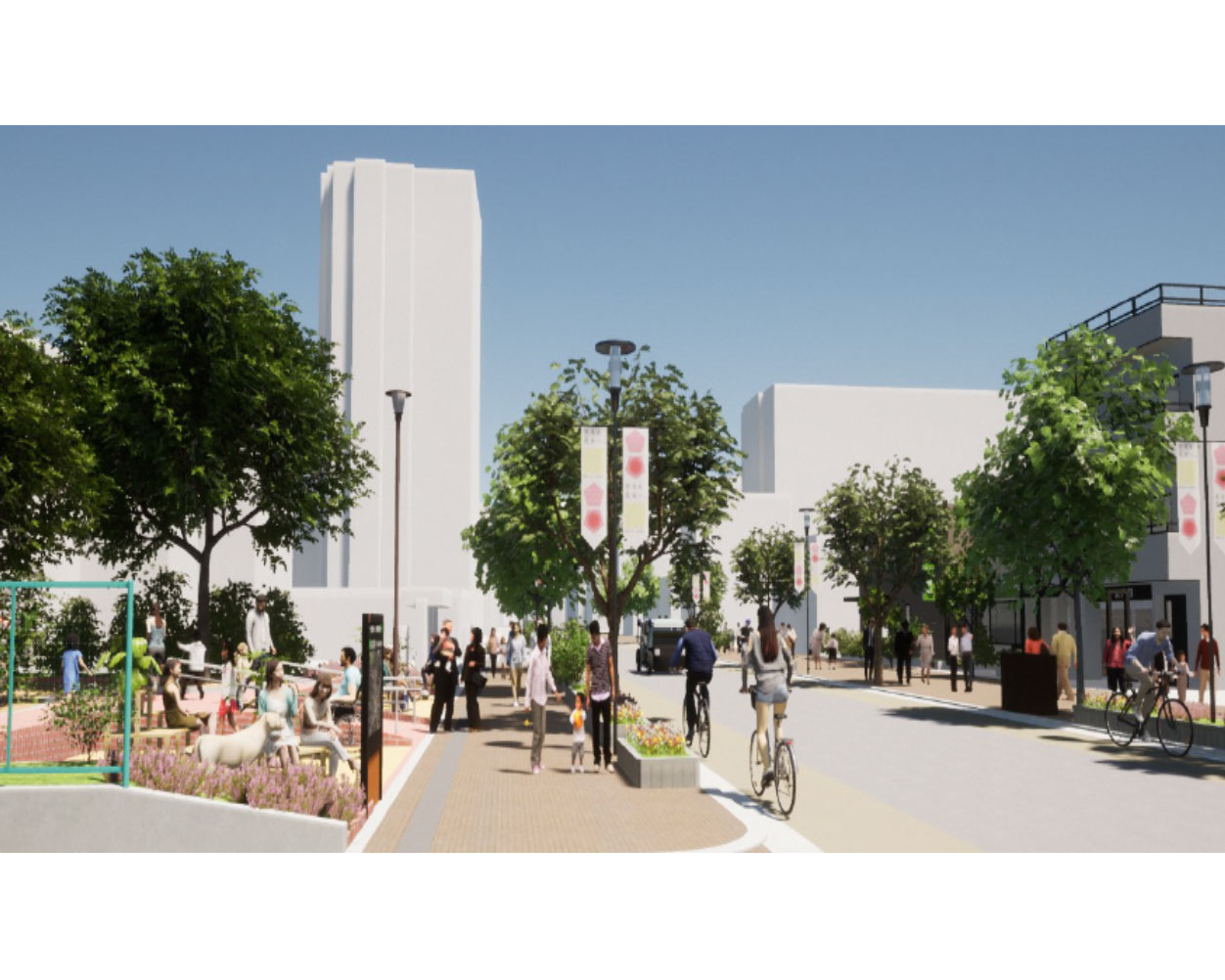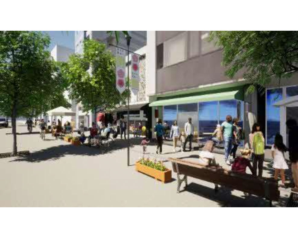またソフト面に関しては、シャッターが閉まったままのお店もあり、通りそのものの賑わいが欠けはじめていることも課題に挙げられる。茨木市ではこれらを解決し、道路空間と沿道建物が一体となって、歩きやすく、楽しく滞在したり、活動したくなるような魅力的な景観デザインの形成を目指している。そこで2020年から、市民、行政、沿道事業者などが一緒になって、3回のワークショップや2回の勉強会の開催、2022年には空間のあり方を実際に検証する社会実験を実施した。