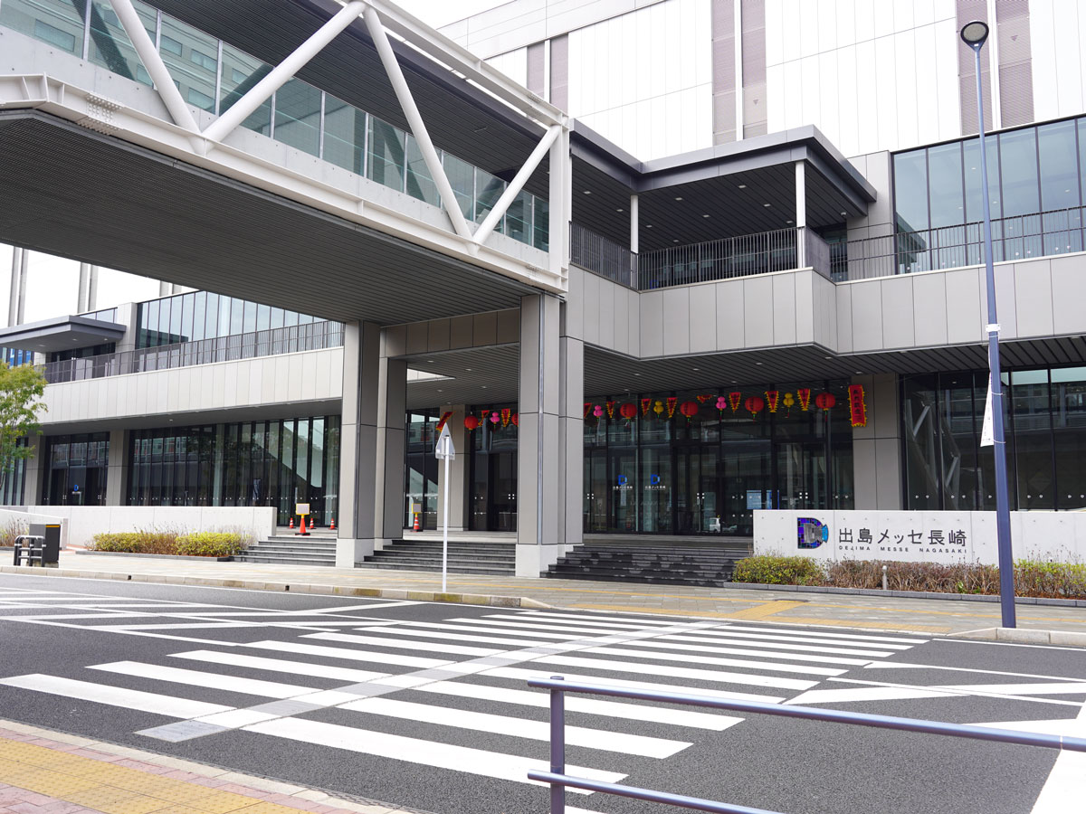 駅舎の西側に2021年11月に完成した「出島メッセ長崎」は、数千人を収容できるコンベンションセンターだ。もともと貨物の車両基地だった場所を区画整理により長崎市が整備した場所で、指定管理者制度を導入して利用料金による独立採算で運営される。