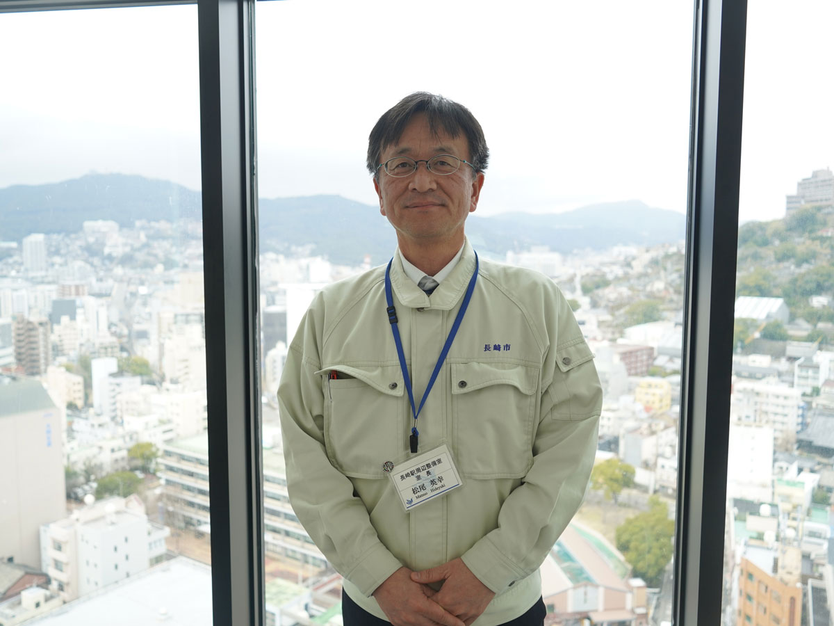 「目指すところは、交流人口の増加。長崎市でも人口減少は深刻な問題で、若手の人口流出に歯止めをかけたいところですが、なかなか厳しい現状です。それを補う意味でも、魅力ある長崎市の玄関口を構築し、長崎に訪れる機会や人を増やしたいと考えています」と、長崎市まちづくり部 長崎駅周辺整備室 室長 松尾英幸氏は話す。
