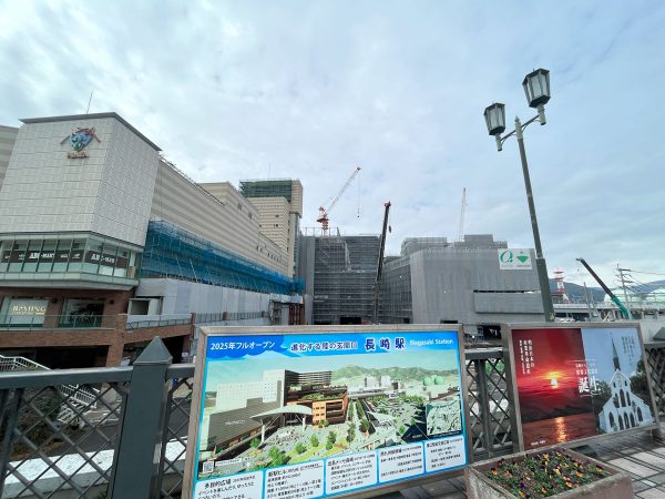 JR九州新長崎駅ビルも2023年秋の開業に向けて進んでいる。地上13階建ての複合施設には、商業テナント、オフィスやホテル(長崎マリオネットホテル)が揃う予定だ。1,500台の駐車場も用意され、ここを起点に長崎市街への観光も広がっていくだろう。