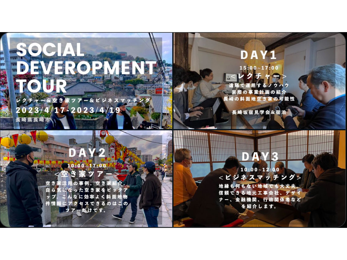 2泊3日のツアーでは、小笠原氏が長崎坂宿で培ってきた遠隔運用のノウハウや事業計画を紹介するだけでなく、斜面地空き家(売り物件)を巡り、最終日には地元工務店やデザイナー、金融機関などとのビジネスマッチングの場も用意する。ツアーで心がけているのは、アイデアだけで終わらせないこと。なかなか表には出てこない空家の情報を掘り起こし、まちに対してポジティブな使い方を実践できるクリエイターを増やすことが問題解決の第一歩なのだ。