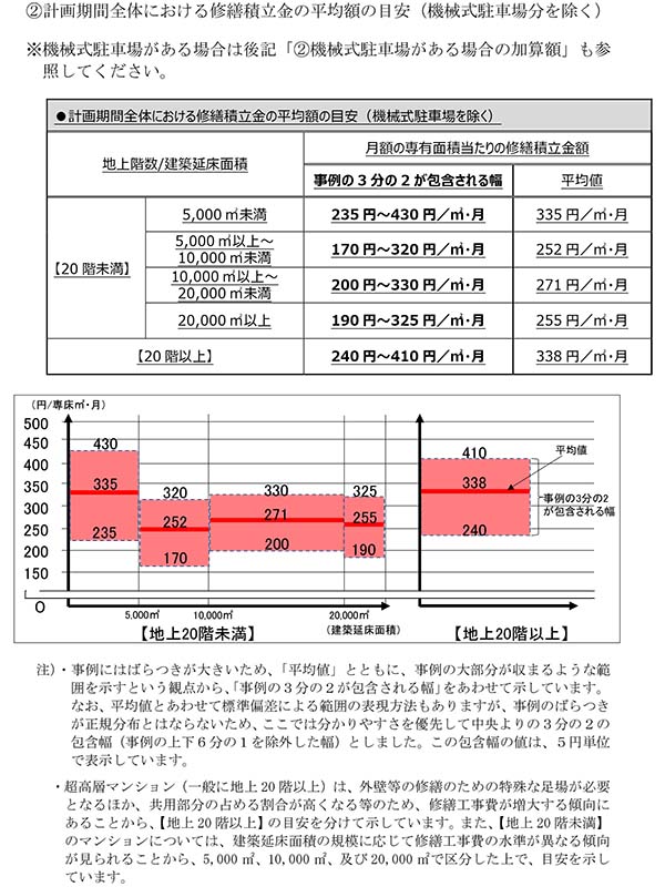 【計画期間全体における修繕積立金の平均額の目安(機械式駐車場を除く)】