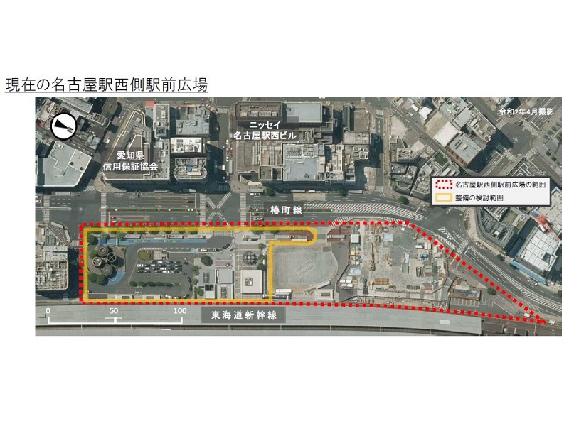 そのなかで名古屋駅西側駅前広場の再整備では、「交通機能の高度化と将来を見据えた西側エリアのまちづくりと連携した重層的な拠点の形成」を目指す。