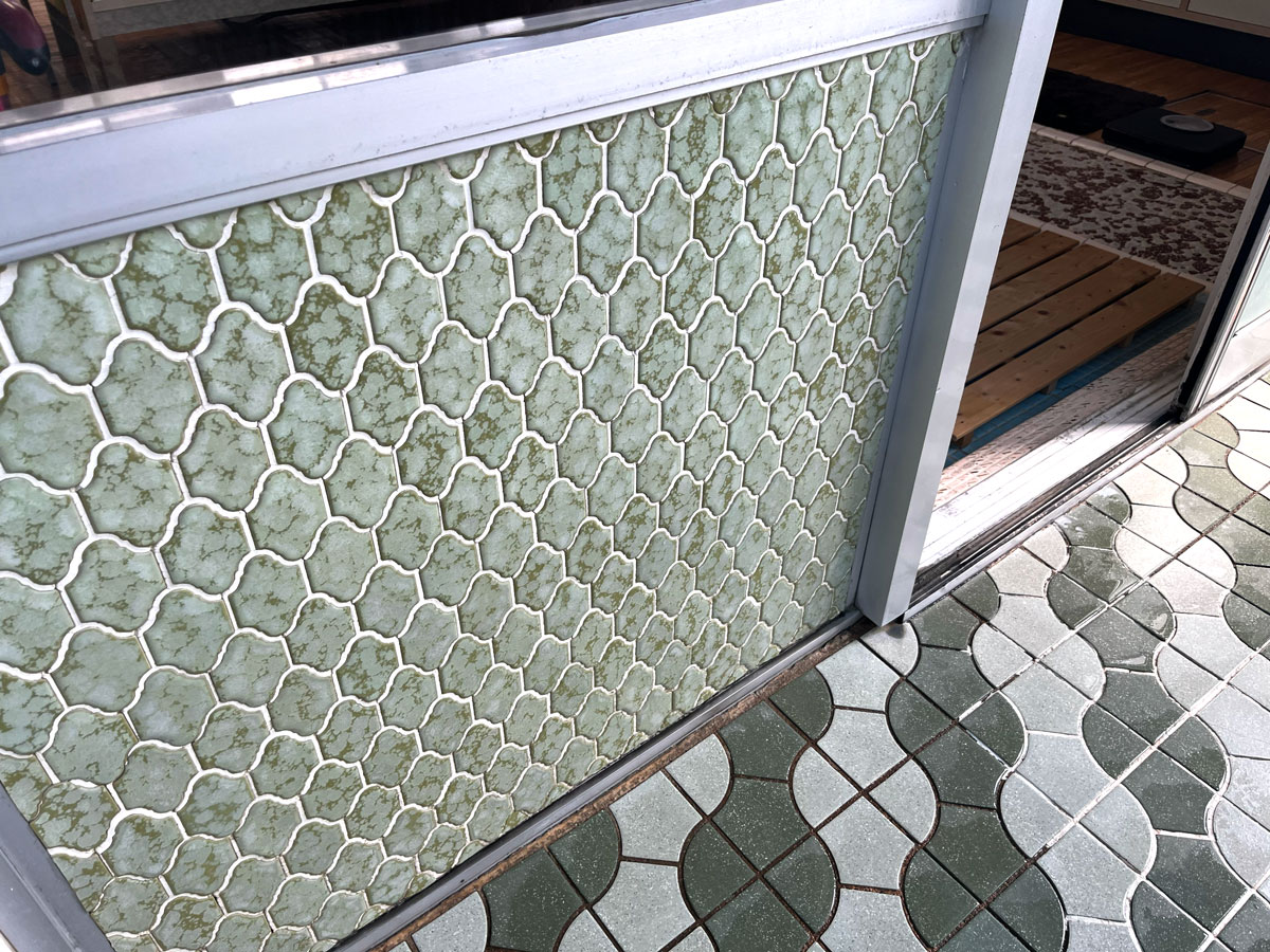 寿楽温泉は、木造2階建て。リノベーションは地域の工務店が担当した。外装や内装も一部を残して、当時の雰囲気をそのまま残している。広さ約50平方メートルの浴室の床面には、北加賀屋のアイコンでもある黄色いアヒルがタイルで描かれている。中庭の縁側部分も空間を広げて、くつろげるスペースとした。もともと店主夫婦が暮らしていた2階は、和室の内装をそのままに残してオープンな休憩スペースに。風呂上がりにゆっくりくつろげる空間が生まれている。