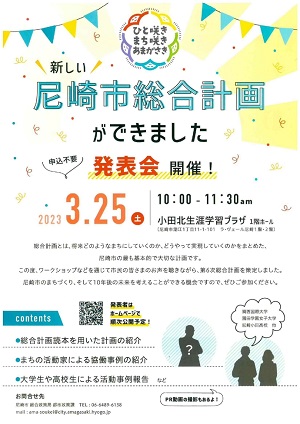 阪神間の中核市、兵庫県尼崎市。大阪市の隣に位置する人口45万の都市である。尼崎市では、2023年度から第6次総合計画がスタートするにあたり、市民に向けた総合計画の発表会を開催した。